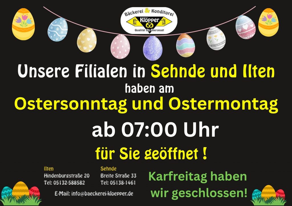 • Unsere Osteröffnungszeiten